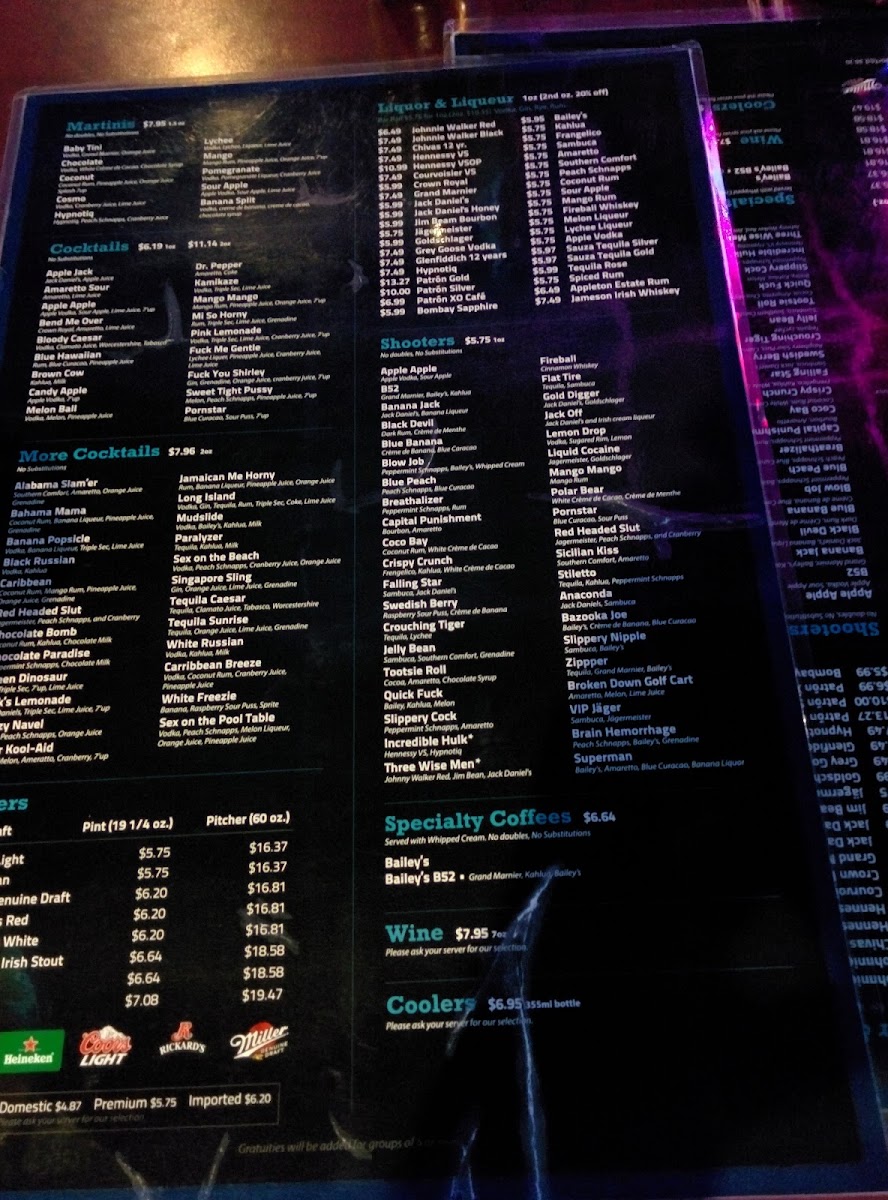 VIP Billiards & Lounge Menu